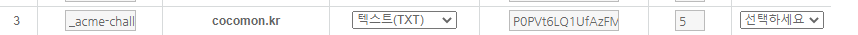 다시 이걸 넣어야 하고 여기서 안내되는 txt 레코드 값을 입력하고 인증해야 발급이 정상적으로 이루어지기 때문입니다.