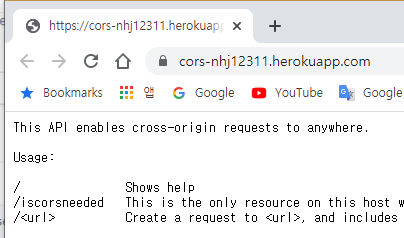 내 주소는 https://cors-nhj12311.herokuapp.com 이다. 크롬으로 접속해보니 잘 나온다. 이제 나만의 프록시 서비스를 갖게 되었습니다.