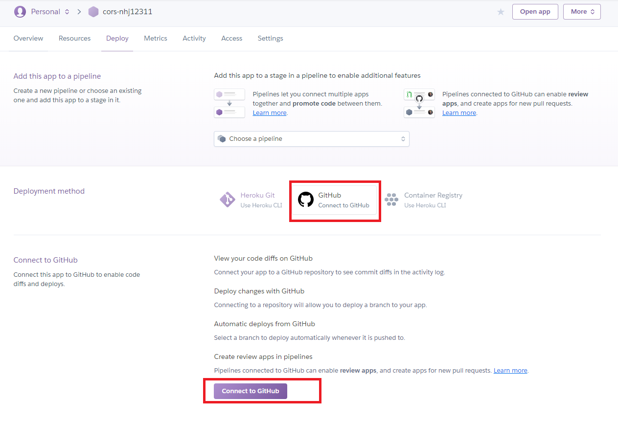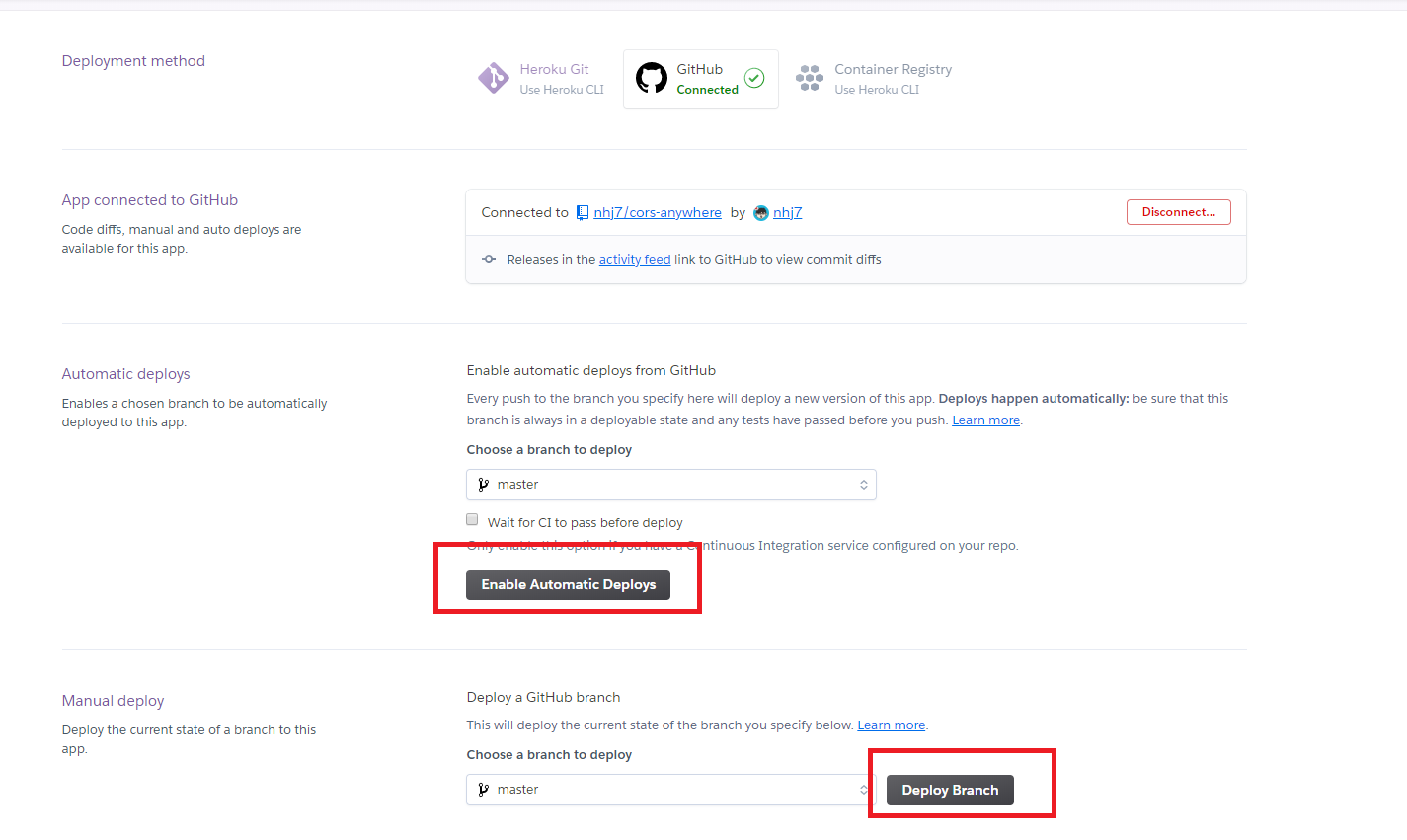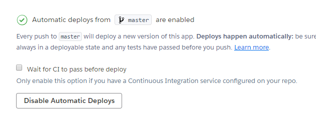 Enable Automatic Deploys 활성화가 되면 Disable Automatic Deploys가 됨.