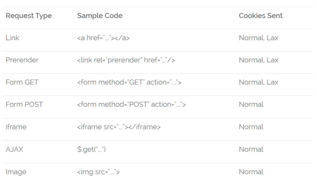 document.cookie = "safeCookie1=foo; SameSite=None";Strict 는 같은 도메인에서만 접근 가능합니다. Lax는 Http 요청과 a href, link href 로만 쿠키 전달이 가능합니다. 그리고 SameSite에서 None 처리를 할 경우 Secure를 사용하지 않으면 전달이 불가능합니다. cross-site를 사용하기 위한 최소한의 보안이라는 거겠죠.