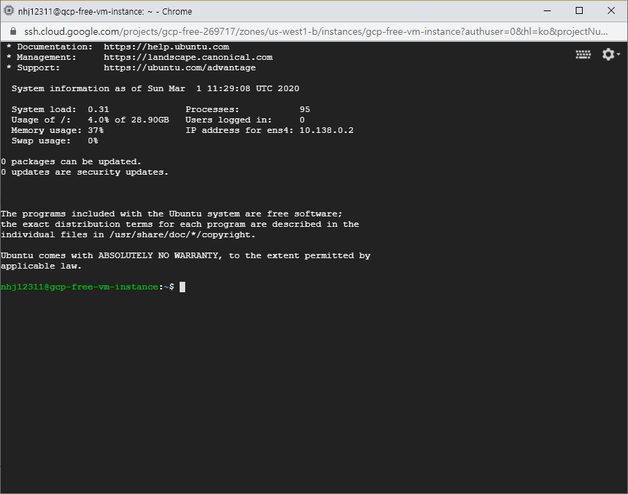 예전에 GCP를 처음 썼을때도 느꼈지만 이 웹 ssh 접속은 AWS에서도 쓰고 싶은 기능 중에 하나인것 같습니다. 어디서든 데스크탑만 있으면 바로바로 붙을 수 있으니까요.