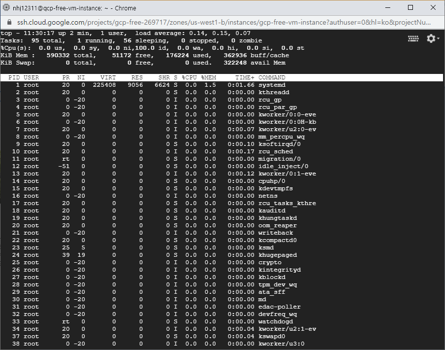 CPU야 그렇다 치는데 메모리가 614MB인것은 공짜로 쓰는 도둑놈 심보긴 하지만 다소 아쉽습니다. AWS 프리티어 사양처럼 1GB 정도만 되도 숨통이 좀더 틔일텐데 말이죠.