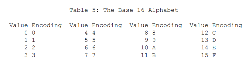 또, 마찬가지로 32진수와 16진수 표현방법인 base32와 base16(hex)이 있는데요. 표현하는 방법은 같다고 생각하면 되는데 정보 표현 방식의 제한 때문에 효율이 낮고 사용할 필요가 별로 없을 것 같습니다.