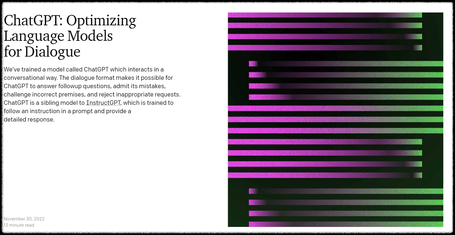 We’ve trained a model called ChatGPT which interacts in a conversational way. The dialogue format makes it possible for ChatGPT to answer followup questions, admit its mistakes, challenge incorrect premises, and reject inappropriate requests. ChatGPT is