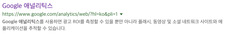 구글에서 애널리틱스를 검색해서 사이트의 디스크립션을 어떻게 해놨는지 한번 보겠습니다. 이 말이 가장 애널리틱스를 표현하는데 적합하지 않나 생각합니다.