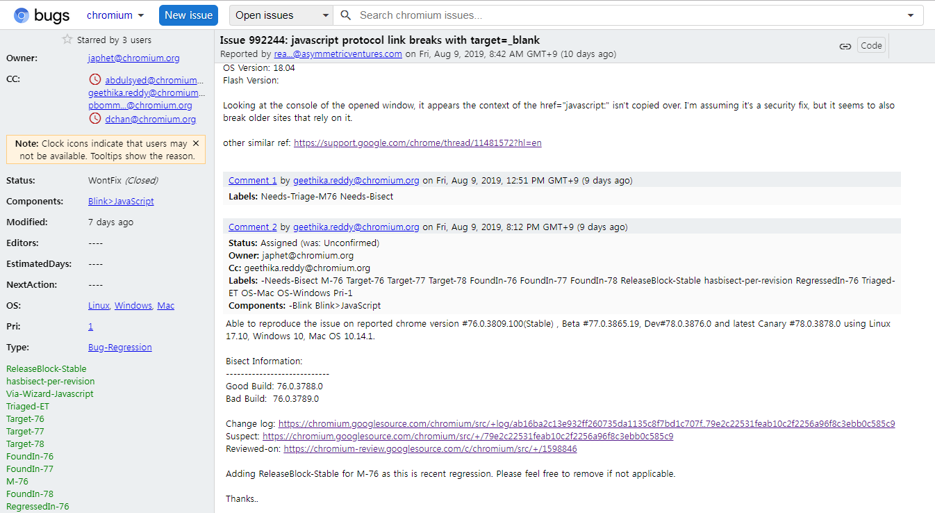 문제의 링크 : https://bugs.chromium.org/p/chromium/issues/detail?id=992244