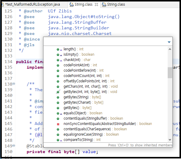 클래스 내에 어떤 메소드(함수)가 있는지 궁금하거나 이동 할때 쓰는 단축키.