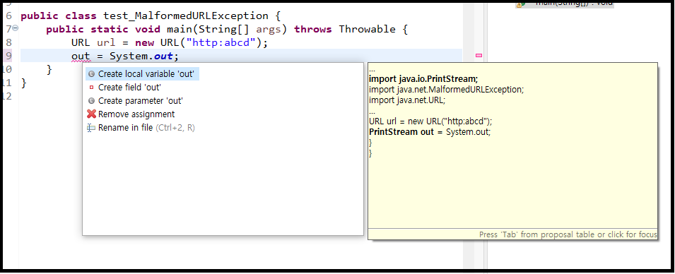 구글링을 하다가 찾은 소스를 붙여넣기 하거나, 어떤 클래스를 입력하고 빨간색이 뜨면 으레 입력하게 되는 단축키죠. 입력하게 되면 클래스 상단에 자동으로 `import [클래스명]`이 입력되거나 동일 클래스명이 있으면 선택하라고 친절하게 알려주기까지 하죠.