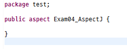‘Exam04_AspectJ’로 만들었다. 확장자가 기본 자바파일과 다르게 *.aj로 만들어지는 것을 확인할 수 있었다.
