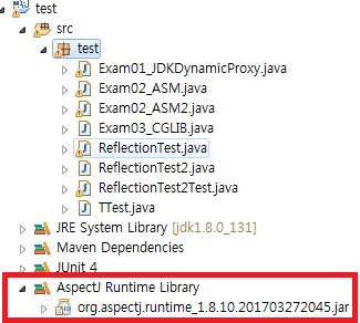 이제 프로젝트에 AspectJ Runtime Library가 추가된다.