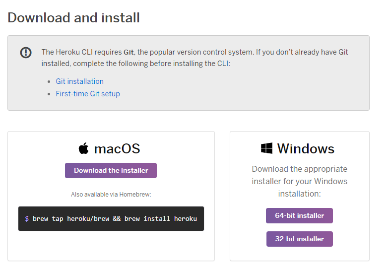 Heroku CLI를 설치해야 하니까 저기 저 링크를 통해서 설치해주도록 합시다.