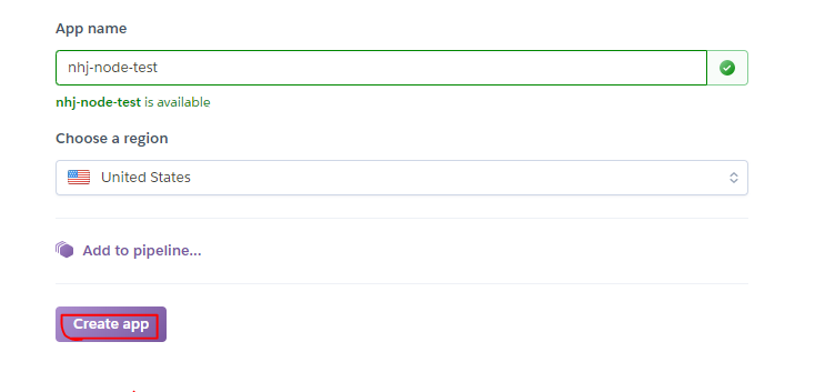 nhj-node-test 로 만들어볼게요. 왠만한 이름들은 다 중복에 걸려서 만들어지지가 않네요. 여기서 만드는 app 이름이 바로 내 서비스 주소가 됩니다.