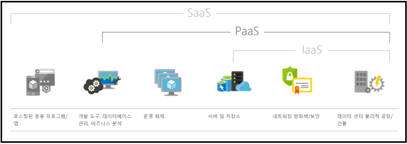 *PasS ( Platform as a Service) : 클라우드에서 제공되는 완전한 개발 및 배포 환경이라고 생각하면 됩니다. 개발적으로는 서버, 저장소, 네트워킹, 미들웨어, 개발도구, BI, 서비스, 데이터베이스 , 빌드, 테스트, 배포, 관리, 업데이트 등 모든 어플리케이션 수명 주기를 지원하는 서비스입니다. 말 그대로 개발 플랫폼이라고 해야할까요.