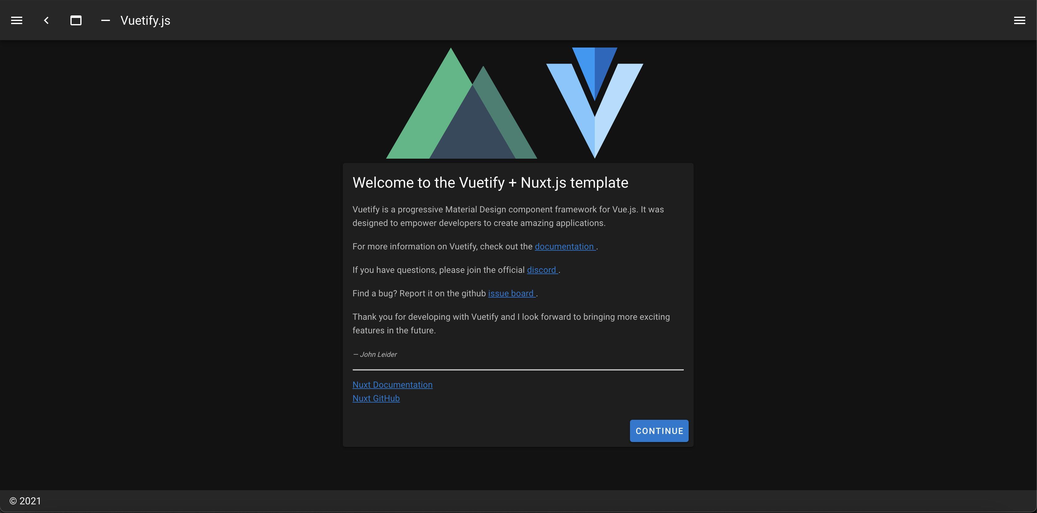 🎉 Successfully created project nuxt-vuetify-tmp